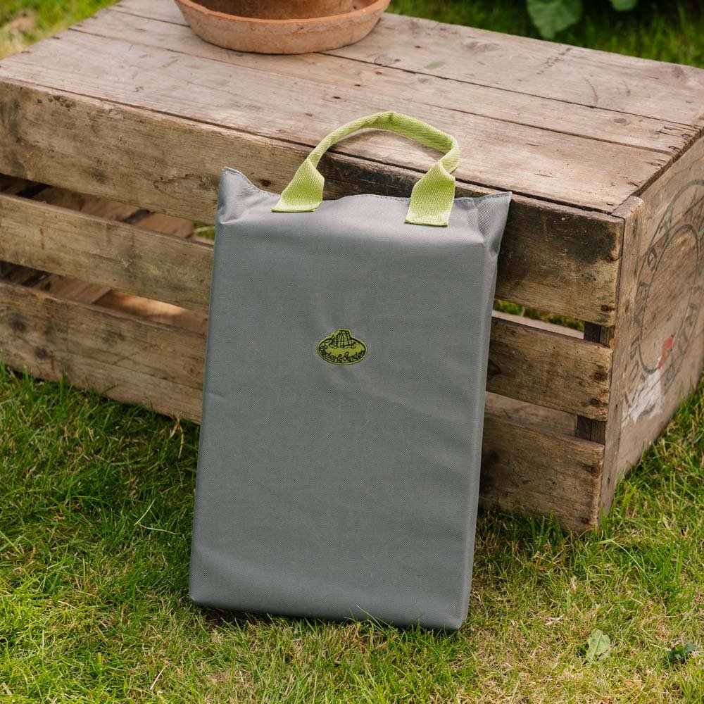 Harmaa polvistumistyyny, pituus 40,2 cm, leveys 26,3 cm