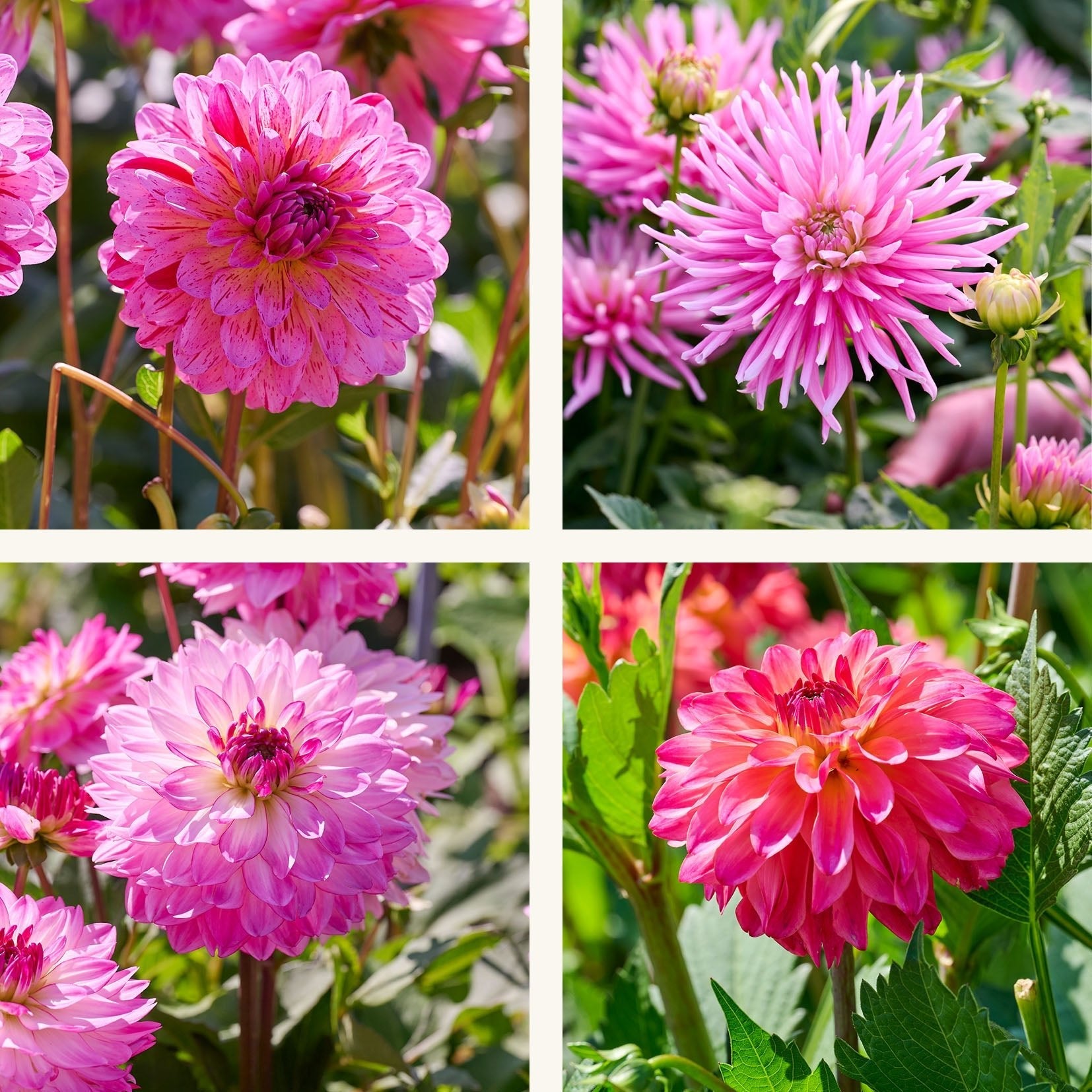 Daaliaseos 'Pink mix' on sekoitus, joka on ihanteellinen sinulle, joka haluat vaaleanpunaisia kukkia puutarhaasi tai parvekkeellesi. Tämä sekoitus sisältää erilaisia daaliatyyppejä vaaleanpunaisen ja tummanpunaisen sävyissä. Voit istuttaa ne yksin luodaksesi yksivärisen ja harmonisen kukkapenkin tai yhdistää ne muihin kukkiin lisätäksesi väriä puutarhaasi. Daaliat sopivat sekä ruukkuihin että kukkapenkkeihin.
