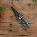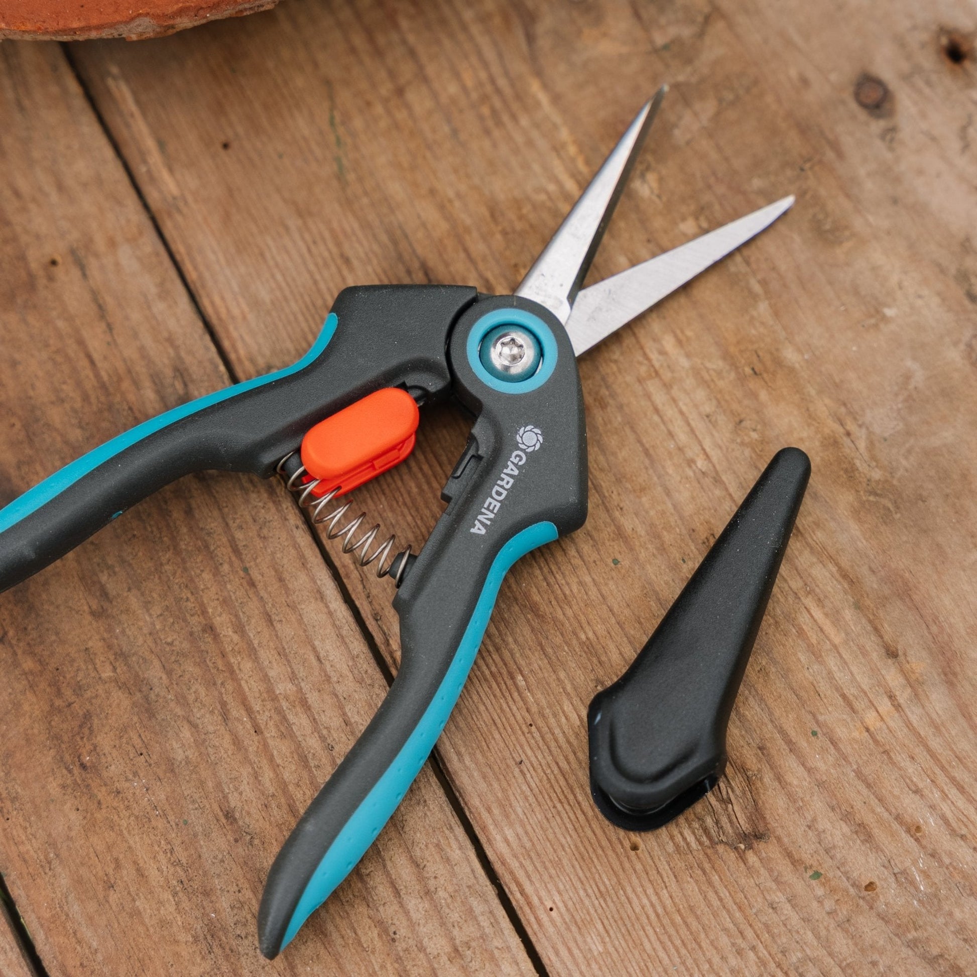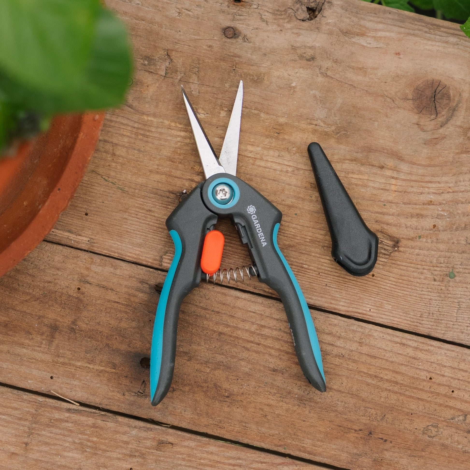 Med FreshCut yrttileikkurit GARDENAlta voit hienosäätää yrttejäsi helposti. Tämä yrttileikkuri on varustettu hienoilla piikeillä, jotka ovat täydellisiä leikkaamaan tuoreimmat yrtit, marjat tai leikattavat kukat. Ergonominen ErgoTec-kahva varmistaa, että käsittely on miellyttävää ja mukavaa. Lisäksi sakset on valmistettu elintarviketurvallisesta ruostumattomasta teräksestä ja ne on suojattu vaikuttavalla 25 vuoden takuuajalla rekisteröitymisen jälkeen, mikä antaa sinulle turvallisuuden ja mielenrauhan puutarhatöissäsi.
