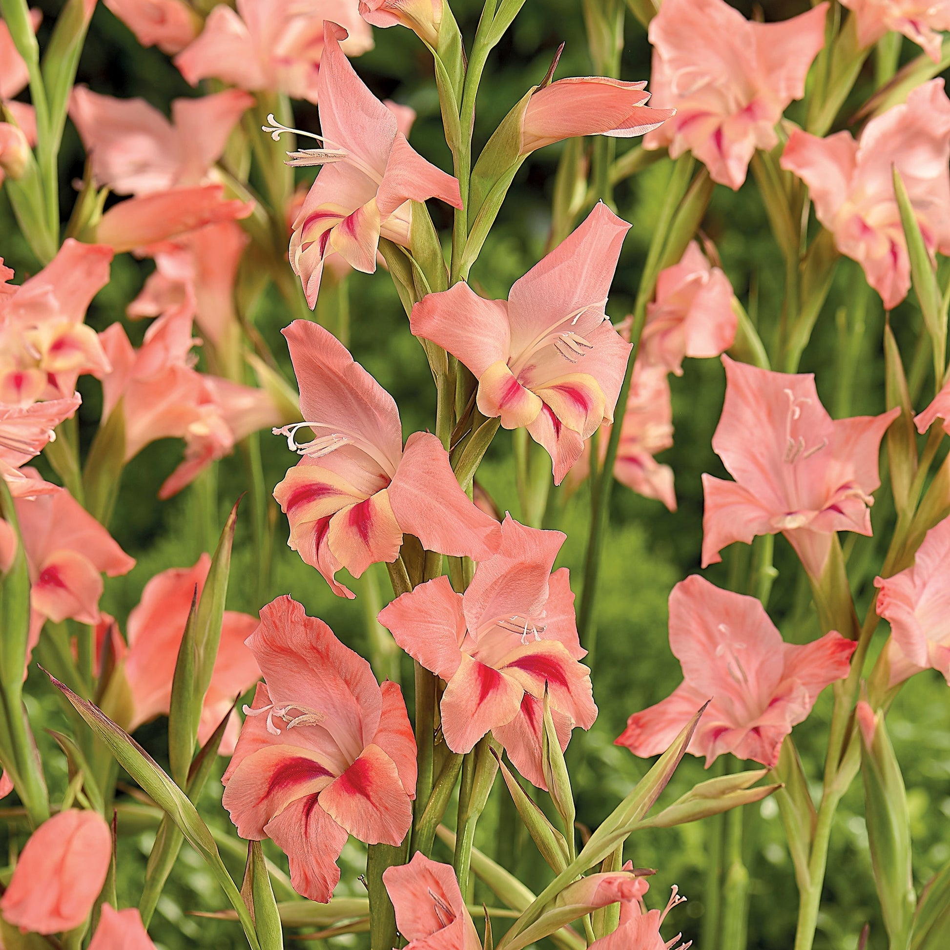 Gladiolus 'Nanus Nathalie' on aikaisin kukkiva gladiolus. Sillä on hienoja vaaleanpunaisia kukkia, joissa on keskellä punaisen ja keltaisen sävyjä. Elegantit varret tekevät tästä gladioluksesta vaikuttavan kukinnan alkukesästä, tuoden väriä ja charmia puutarhaasi. Sen koko tekee siitä myös sopivan pienempiin kukkapenkkeihin ja ruukkuihin.