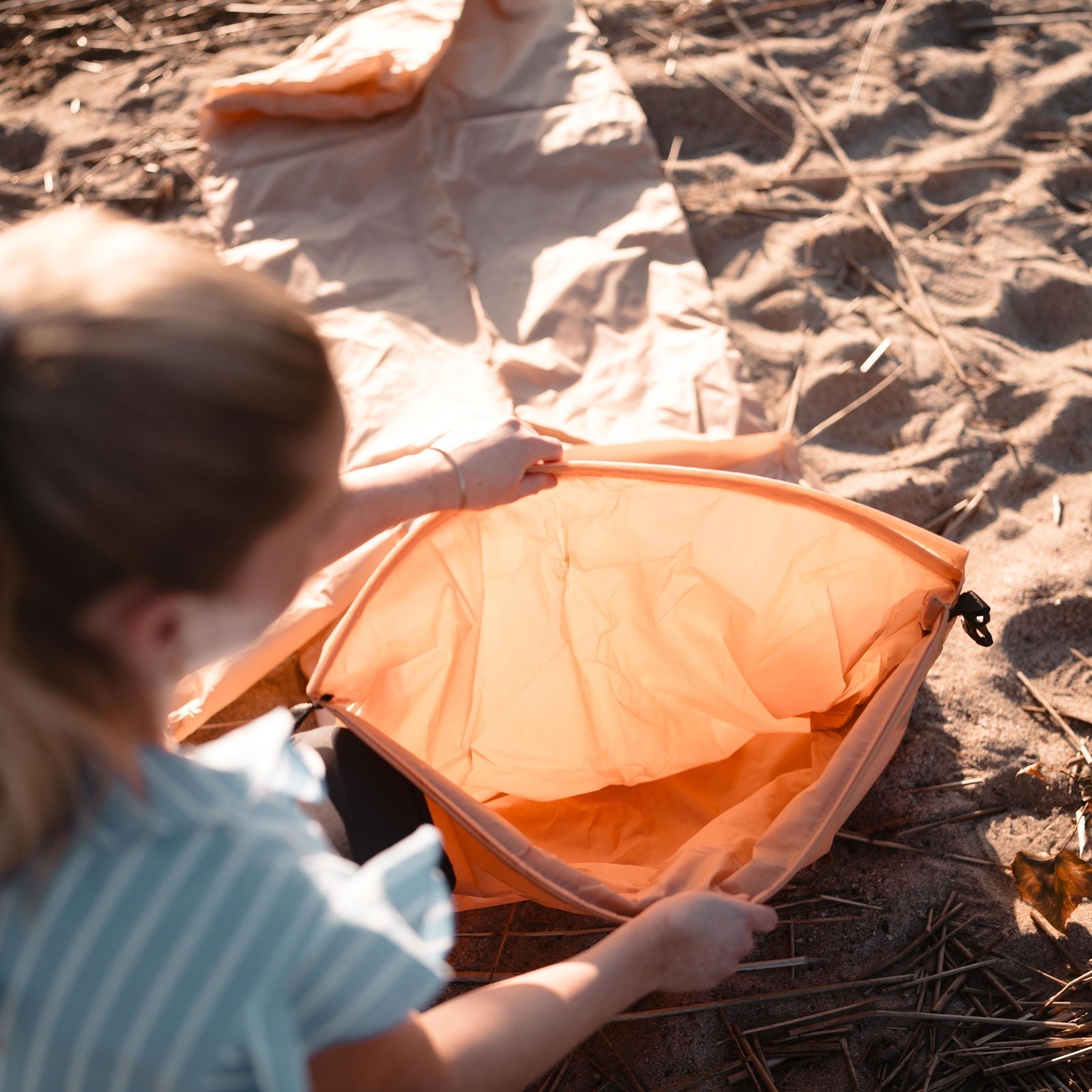 Ilmatäytteinen lepotuoli on suunniteltu tarjoamaan sinulle optimaalinen mukavuus missä tahansa oletkin. Se on erittäin kevyt pakata ja kantaa, mikä tekee siitä täydellisen rannalle, puistoon tai omaan pihaasi mukaan otettavaksi. Kevyen ja yksinkertaisen mekanismin ansiosta voit saada sen käyttövalmiiksi muutamassa sekunnissa ilman pumppua. Riittää, että avaat sen, heilautat sitä ilmassa ja suljet aukon, niin sinulla on vakaa koko pituinen lepotuoli. Kestävä rakenne kestää erilaisia alustoja, kuten hiekkaa, ruohoa ja maata, ja sitä voi käyttää moniin eri tarkoituksiin, kuten retkeilyyn tai rentouttavaan iltapäivään puutarhassa.