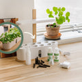 Aloita alle 5 minuutissa helposti käytettävällä itsekastelujärjestelmällämme, jossa yrtit ja vihannekset kasvavat jopa viisi kertaa nopeammin kuin normaalisti – täydellinen kaikille tasoille. Tilaa 10 kasville, jotka voivat kasvaa jopa 28 cm korkeiksi, ja saat runsaasti tuoreita yrttejä ja pieniä vihanneksia suoraan keittiönpöydälle – täysin ilman multaa.