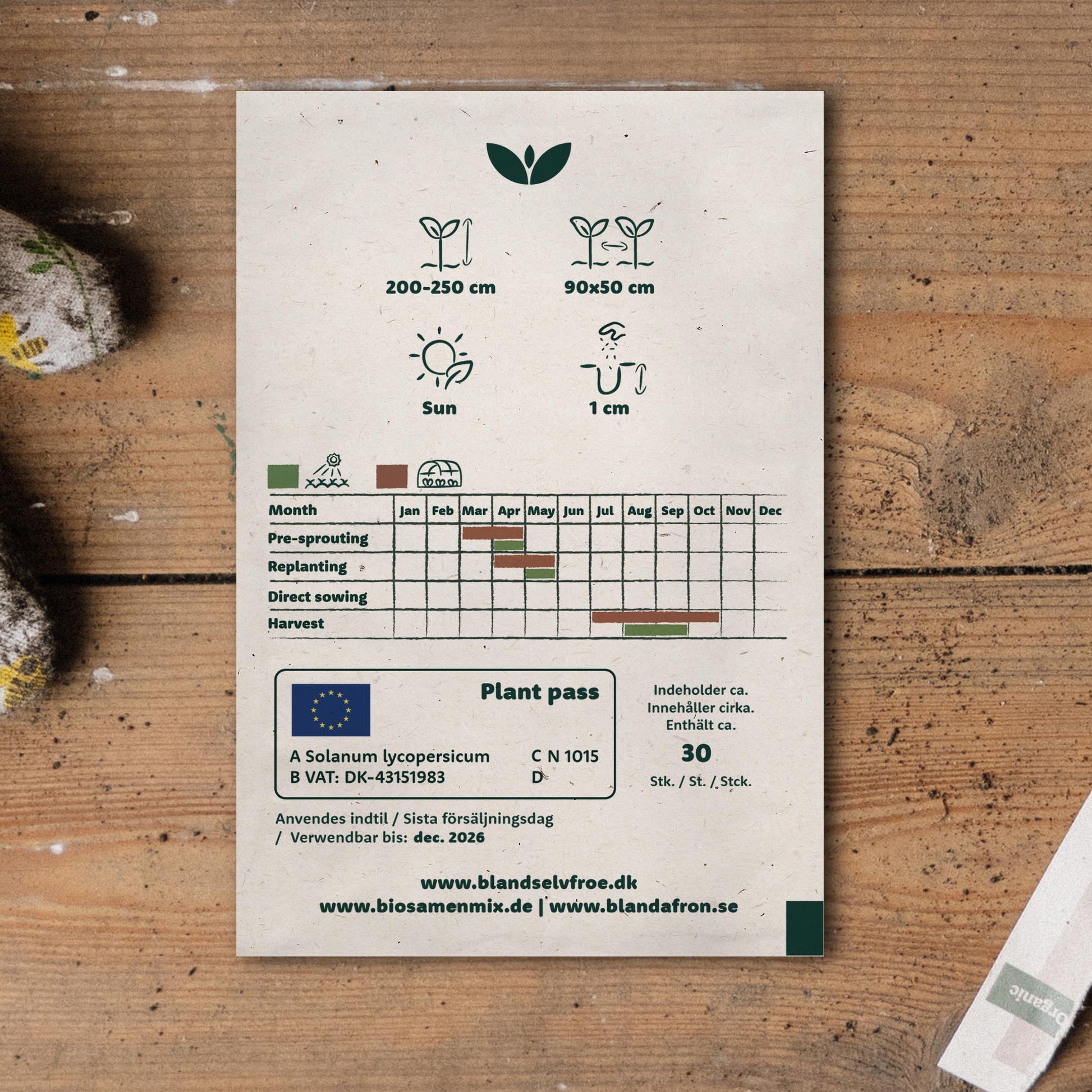 Kirsikkatomaatin siemenet 'Cerise', musta, jossa on tummanpunaisia, kiiltäviä tomaatteja, jotka painavat 18-25 grammaa ja omaavat poikkeuksellisen makean maun. Optimaalisen kasvun saavuttamiseksi varren tulee olla tuettu, ja sivuversoja tulisi poistaa säännöllisesti. Kasvata 'Ceriseä' ja nauti tuoreista, maukkaista kirsikkatomaatteista suoraan omasta puutarhastasi tai parvekkeeltasi.