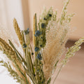 Anna kodillesi ripaus rauhaa ja eleganssia Kuivakukkakimppu Sans – herkkä kokoelma kuivattuja viljankärkiä, pehmeää pampassammalta ja hienoja valkoisia kukkakärkiä, joita täydentävät hienovaraiset siniset kontrastit. Se pysyy kauniina jopa 12 kuukautta ilman vettä tai hoitoa.
