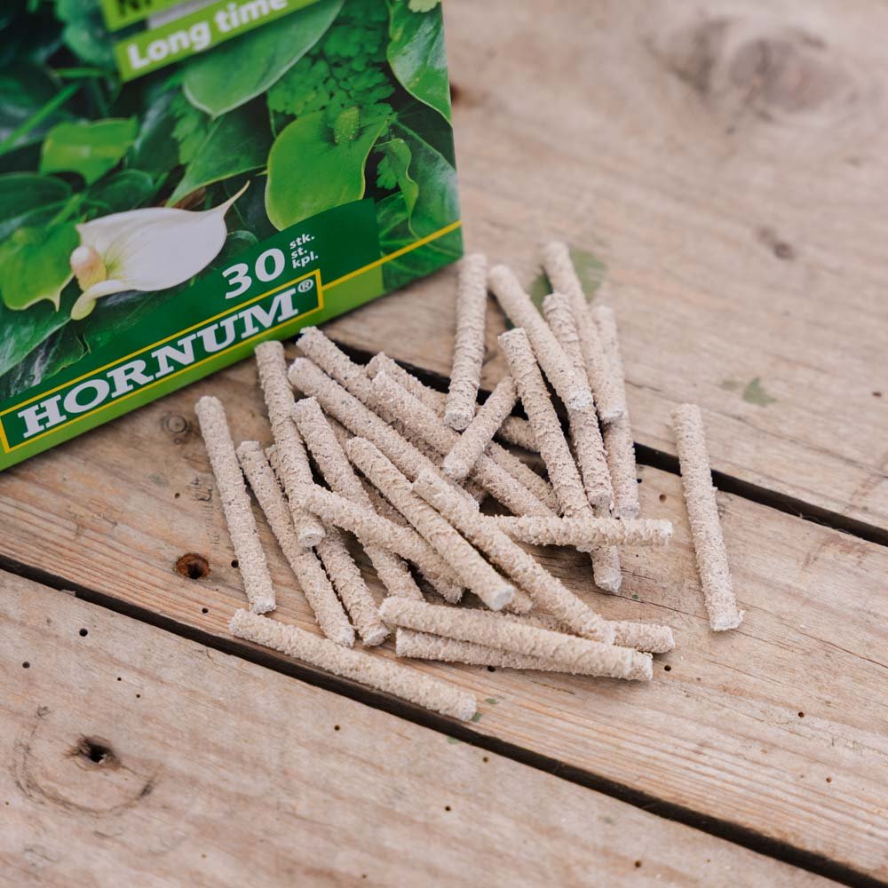 - Dosering: Generelt anbefales 1 pind til små potter og flere til større beholdere, afhængigt af plantens størrelse og næringsbehov.