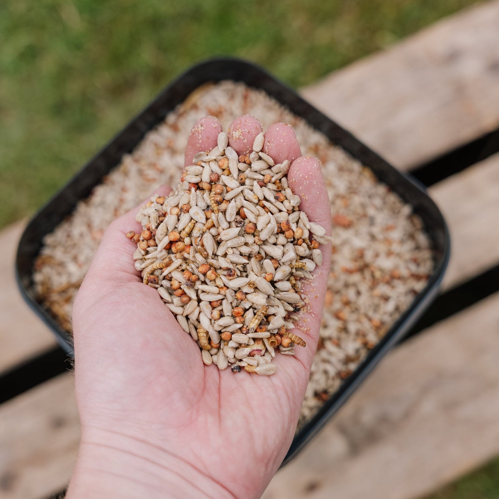 - Såning og placering: Tilbyd foderet i en ren og tør foderstation, gerne ved havebordet eller i et område med god udsigt, hvor fuglene trygt kan spise.