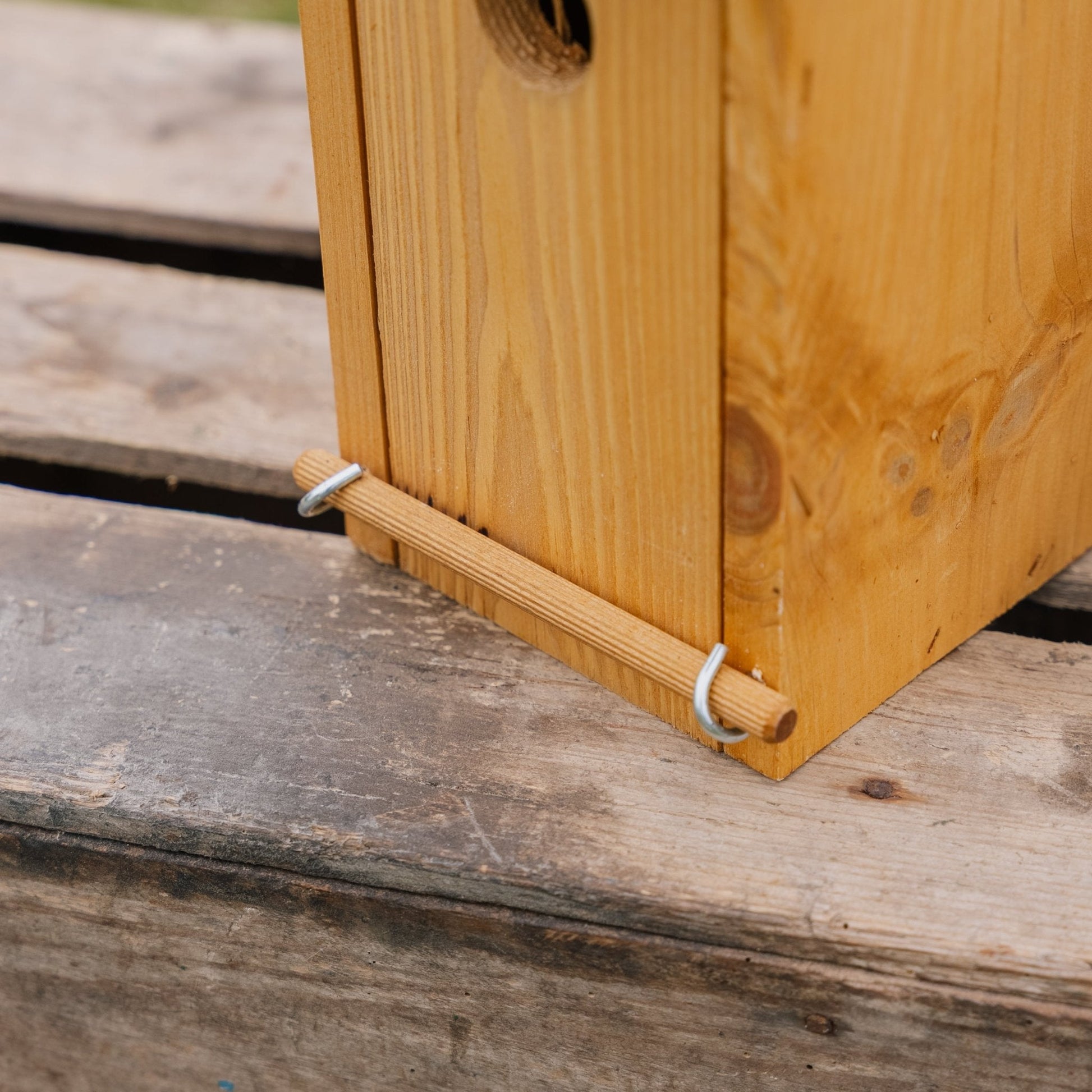- Opsætning: Hæng redekassen på et roligt sted, gerne under tagudhæng eller i en bevoksning med læ, for at beskytte mod vind og vejr.