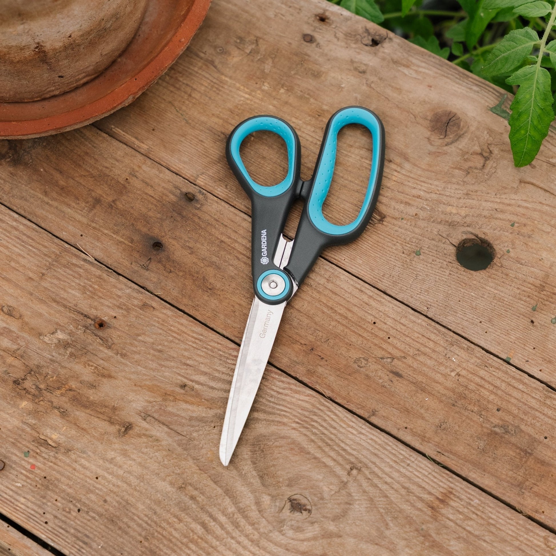 MultiCut saksit on käytännöllinen ja monitoiminen työkalu puutarhaan, kotitalouteen ja harrastuksiin. Se on valmistettu ruostumattomasta teräksestä, ja terät ovat elintarvikekäyttöön hyväksyttyjä, mikä tekee siitä turvallisen leikata ja käsitellä ruokaa ilman hajua tai makua. Saksissa on ergonominen kahva, joka on valmistettu yli 70 % kierrätyspolymeeristä ja suunniteltu ErgoTec-tekniikalla, mikä takaa hyvän ergonomian ja vähentää väsymyksen ja rasitusvammojen riskiä käytön aikana.