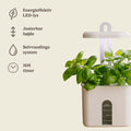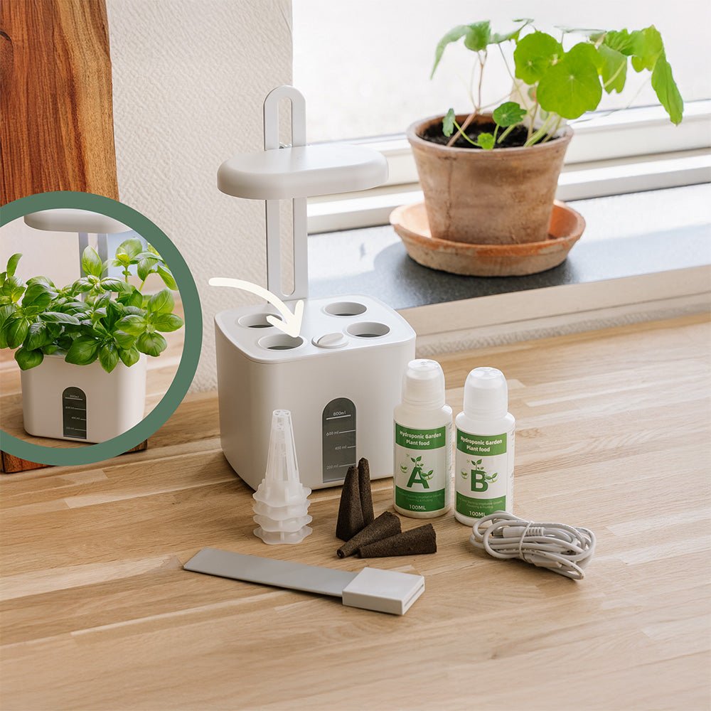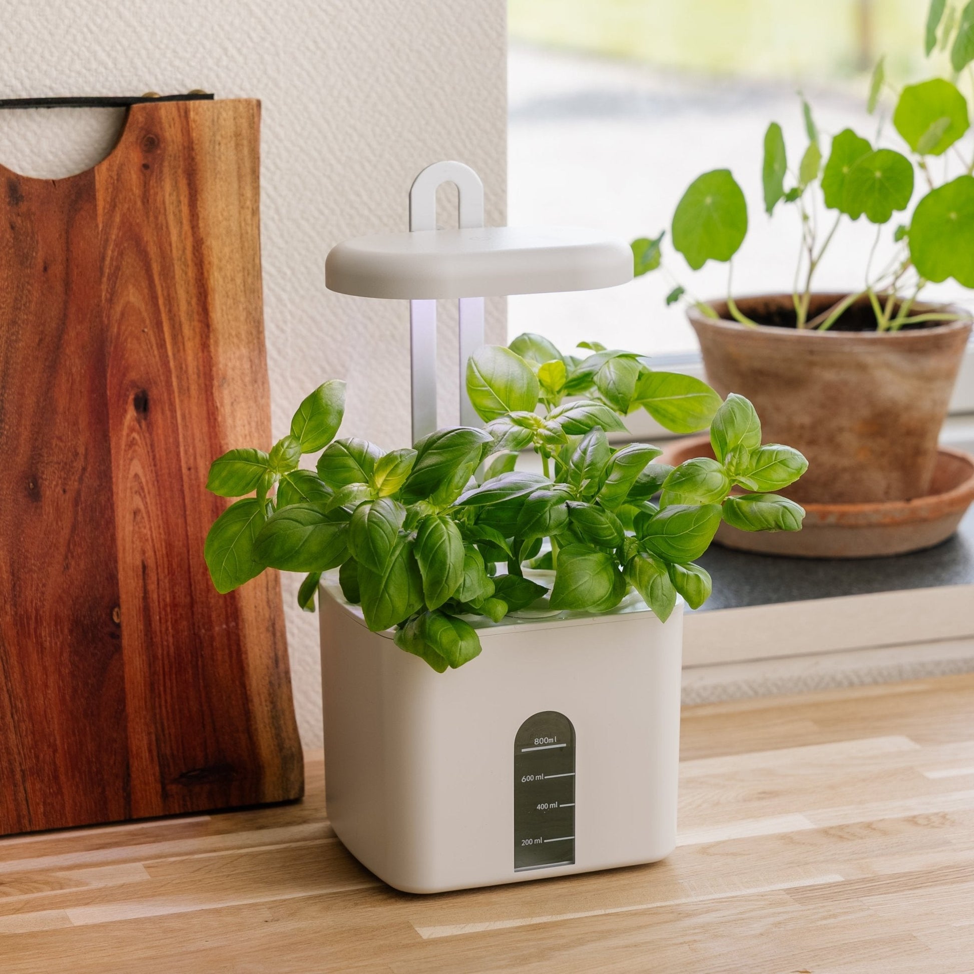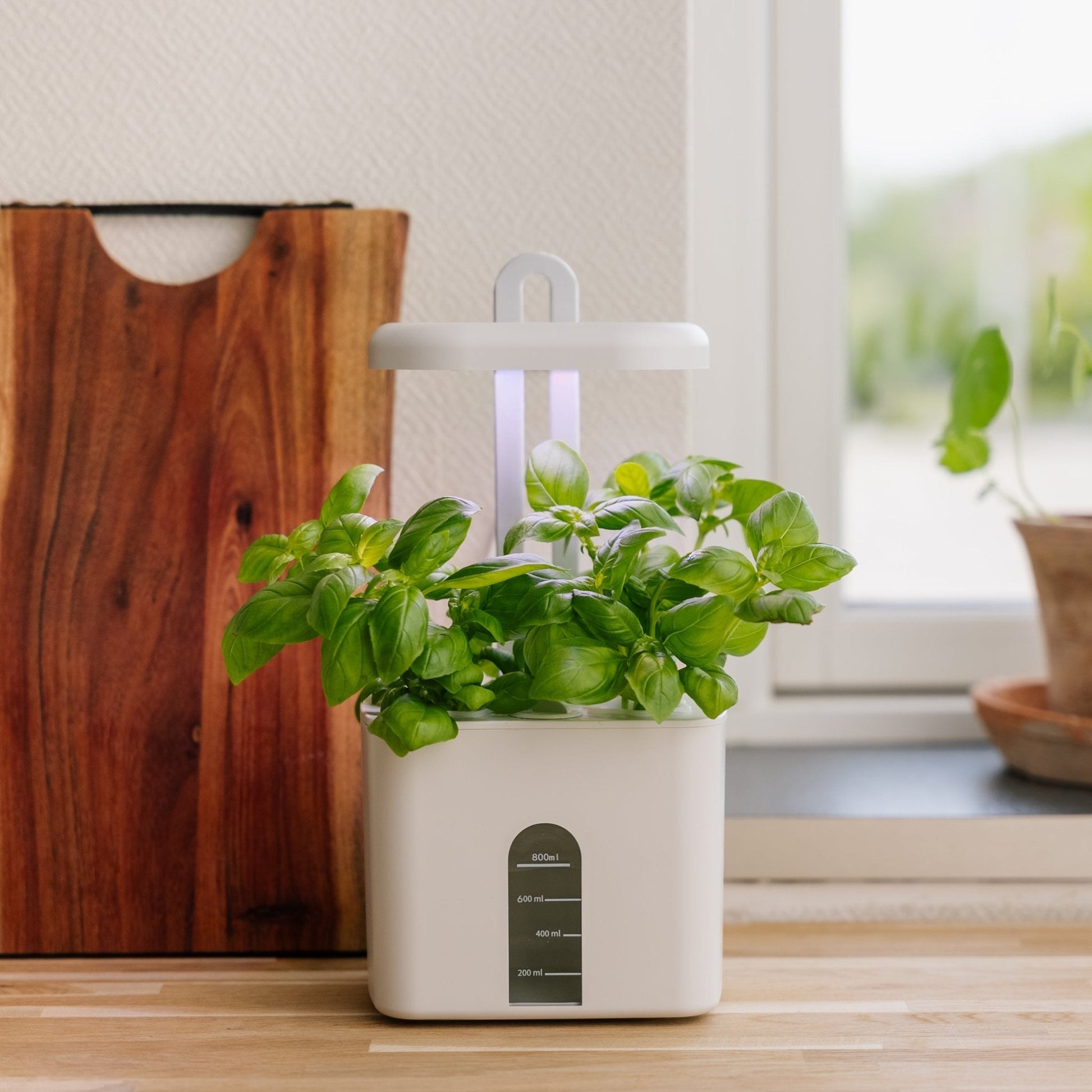 Aloita alle 5 minuutissa helposti käytettävällä itse kastelujärjestelmällämme, jossa yrtit ja vihannekset kasvavat jopa viisi kertaa nopeammin kuin normaalisti – täydellinen kaikille tasoille. Tilaa 4 kasville, jotka voivat kasvaa jopa 28 cm korkeiksi, ja saat runsaasti tuoreita yrttejä ja pieniä vihanneksia suoraan keittiönpöydälle – täysin ilman multaa.