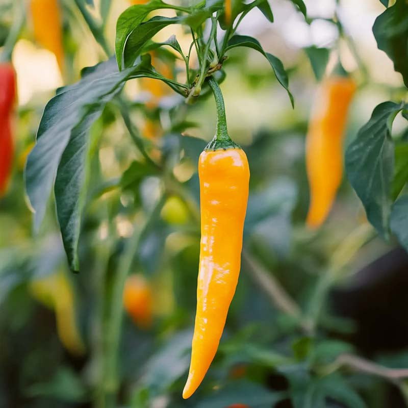 Kokeile meidän 'Koh Tao' -chilitamme, joka on chilivaihtoehto, tuottaa upeita, oransseja hedelmiä, jotka ovat jopa 14 cm pitkiä ja painavat noin 25 grammaa. Hedelmiä on tasainen ja suora muoto sekä keskivahva tulisuus, jonka Scoville-arvo on 4000. Kasvata 'Koh Tao' -chiliä ja lisää makua ja mausteista vivahdetta ruokiisi.