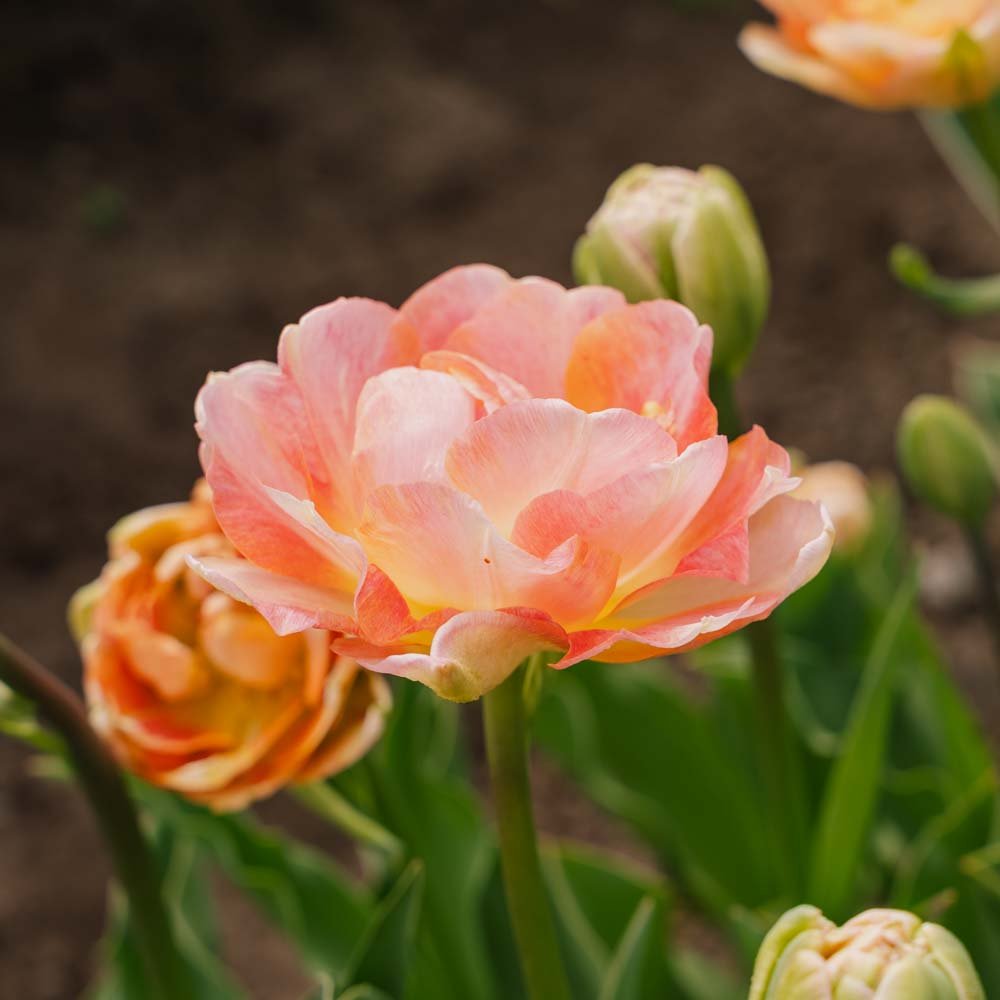 Tulppaani 'Charming Lady' on myöhään kukkiva kaksinkertainen tulppaani, joka lumoaa ainutlaatuisella ulkonäöllään. Lajikkeella on kerroksittain herkkiä terälehtiä, jotka säteilevät pehmeitä pastellisävyjä, muistuttaen lempeää keväistuulta. 'Charming Lady' saavuttaa upean kukkakorkeuden noin 50-60 senttimetriä ja sitä voidaan käyttää myös leikkokukkana.